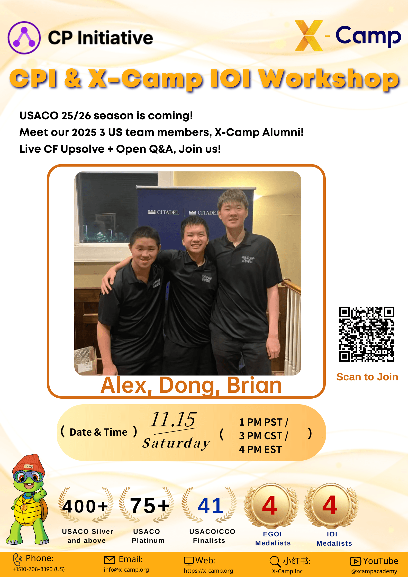 Meet three US team members for the 2025 International Olympiad in Informatics! Live CF Upsolve + Open Q&A.